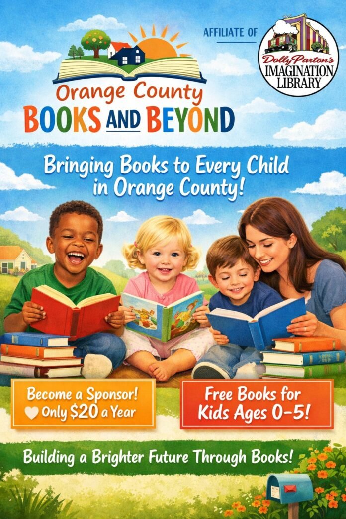 Orange County Books and Beyond (OCBB) was formed to serve as the local nonprofit sponsor for Dolly Parton’s Imagination Library in Orange County. Parton’s program was created to foster a love of reading among preschool children and their families. It began in 1995 in East Tennessee and has expanded throughout the United States as well as Canada, the UK and Australia. The program mails high-quality, age appropriate books directly to the homes of registered children. Children up to age 5 are eligible. Today, the program sends more than one million books to children around the world each month.