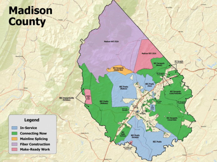 At Tuesday’s board of supervisors meeting, Firefly Key Account Executive Galen Creekmore updated those in attendance on the project’s status. The RISE project is a partnership between Firefly Fiber Broadband, Rappahannock Electric Cooperative (REC) and Dominion Energy and aims to bring affordable, high-speed internet to more than 42,000 homes and businesses over 13 counties including Madison County. The two-phase project is funded via VATI 2022 and 2024 grants, with local and private sector matching funds. A portion not originally included in the project was initially covered via an FCC grant awarded to Brightspeed. The area has since been added to the RISE project along with the matching funding.