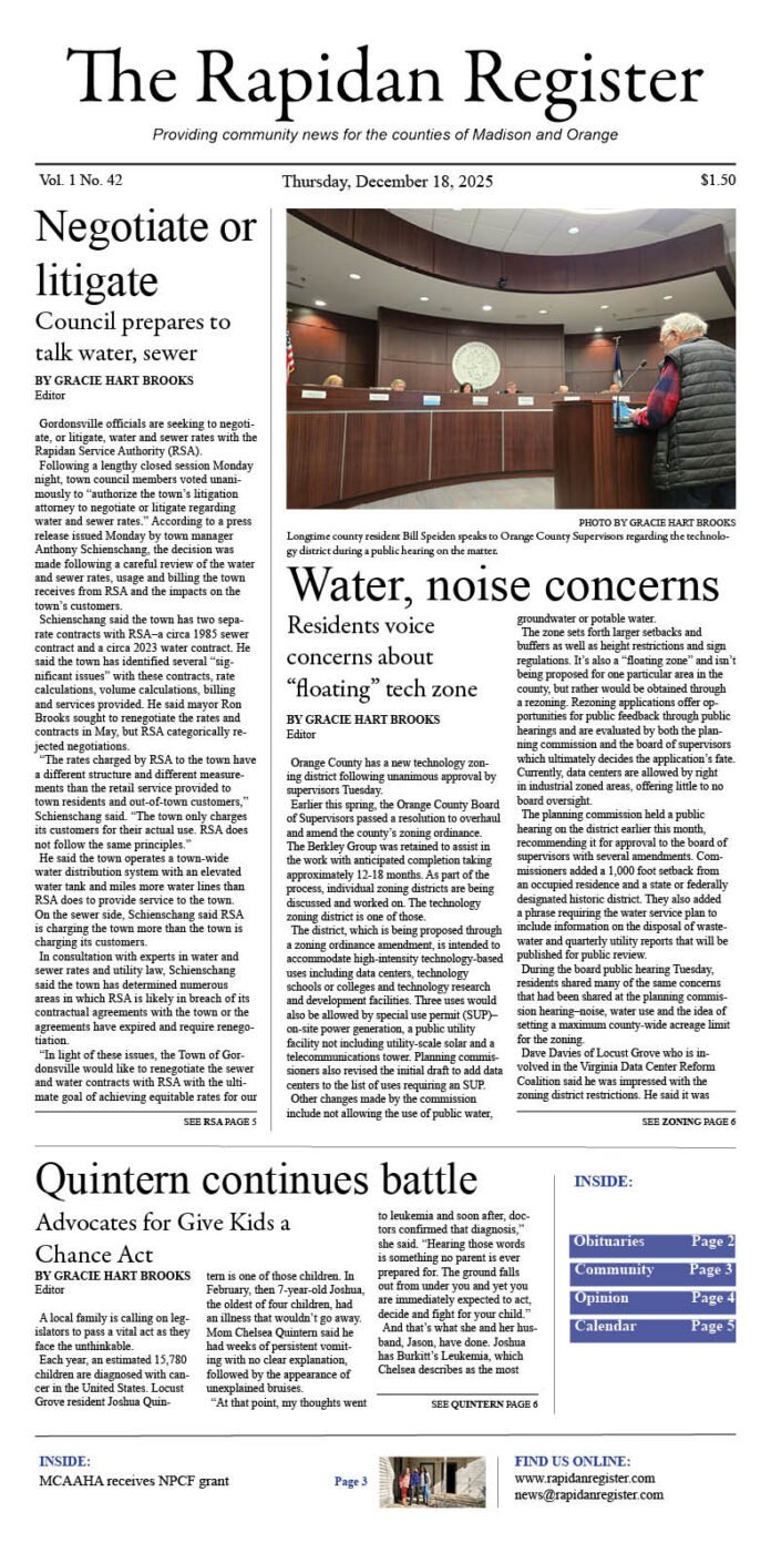 Gracie Hart Brookshttp://rapidanregister.comBorn and raised in Virginia, Gracie has nearly two decades of experience in community journalism covering county and town boards and commissions, education, business and more. She believes in the power and importance of telling local stories and resides with her husband, two daughters and Bernedoodle in a small town.