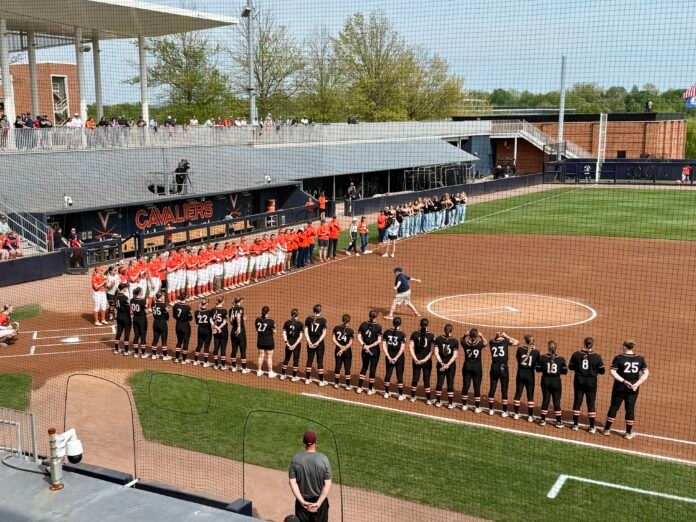 Former educator, coach, and umpire Becky Gore, a Madison County native, was honored recently at a University of Virginia softball game. Gore, who taught for 41 years and coached the Madison County High School (MCHS) softball team from its inception in 1973 until 1991, was selected to throw out the first pitch at the UVA-Virginia Tech game on April 12.