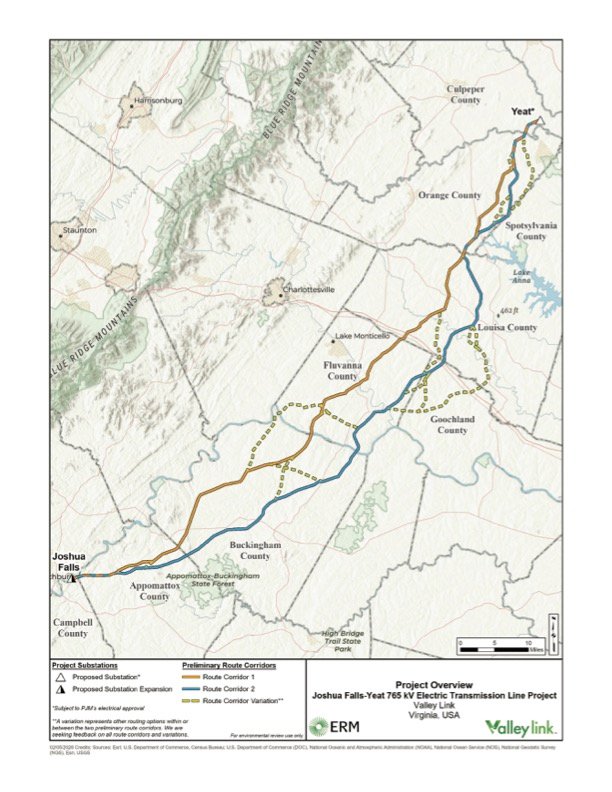 The second of the three projects, named the Joshua Falls-Yeat project, will likely have the most local impact. Preliminary routes cross up to nine localities, including Orange County. The project is said to strengthen grid stability and support the state’s continued economic and technological leadership in what officials have said is the state’s fastest growth in electricity demand since post-World War II.